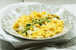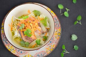 Légumes, maquereau fumé, sauce crémeuse à l'orange